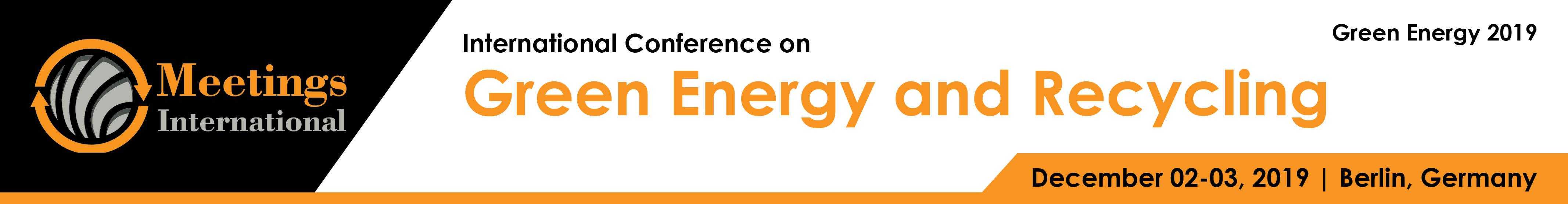 International Conference Green Energy and Recycling warmly welcomes each one of the individuals and supporters from worldwide to attend during December 02-03, 2019 in Berlin, Germany which will emphasize on the theme 'Green Energy: Brightening Up the Sustainable World'. This Congress will serve an excellent experience and opportunities to enhance one's career. This conference is focused on all the major fields of Green Energy & recycling. It provides a platform for researchers/scientists to share and globalize their research work while the participants from industry can promote their products thus felicitating dissemination of knowledge. We anticipate participants around the globe with thought provoking keynote lectures, oral and poster presentations.