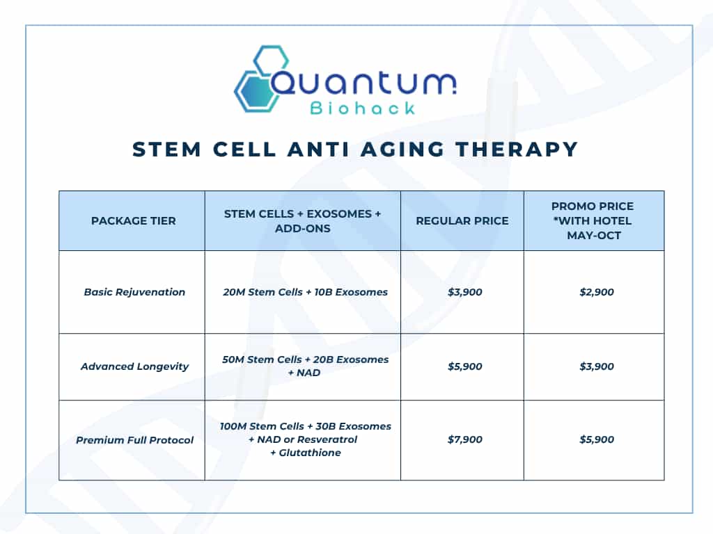 - Affordable Advanced Therapy: Access a comprehensive anti-aging stem cell protocol in Playa del Carmen for only $2,900, a fraction of the cost in Western countries.