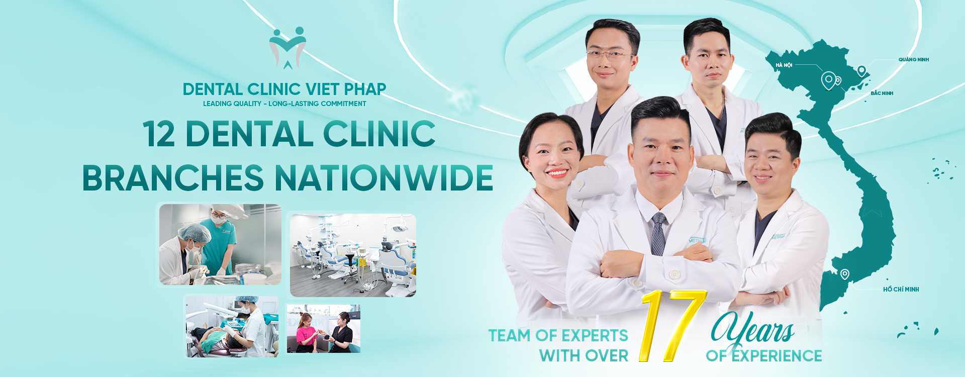 For over 16 years, Viet Phap International Dental Clinic has established its position as a beacon of medical quality and aesthetic innovation in the Vietnam dental industry. Founded on the unwavering philosophy of "Quality First - Long-term Commitment", this facility has grown tremendously from a small clinic into a powerful, world-class dental network. Today, Viet Phap International Dental Clinic owns 12 modern facilities strategically located in major urban centers, including the cultural hub of Hanoi, the bustling economic center of Ho Chi Minh City, and the rapidly developing Bac Ninh province. This phenomenal expansion is a direct testament to the solid trust that both domestic and international patients have in the outstanding treatment results, transparent professional ethics, and patient-first motto of Viet Phap International Dental Clinic.